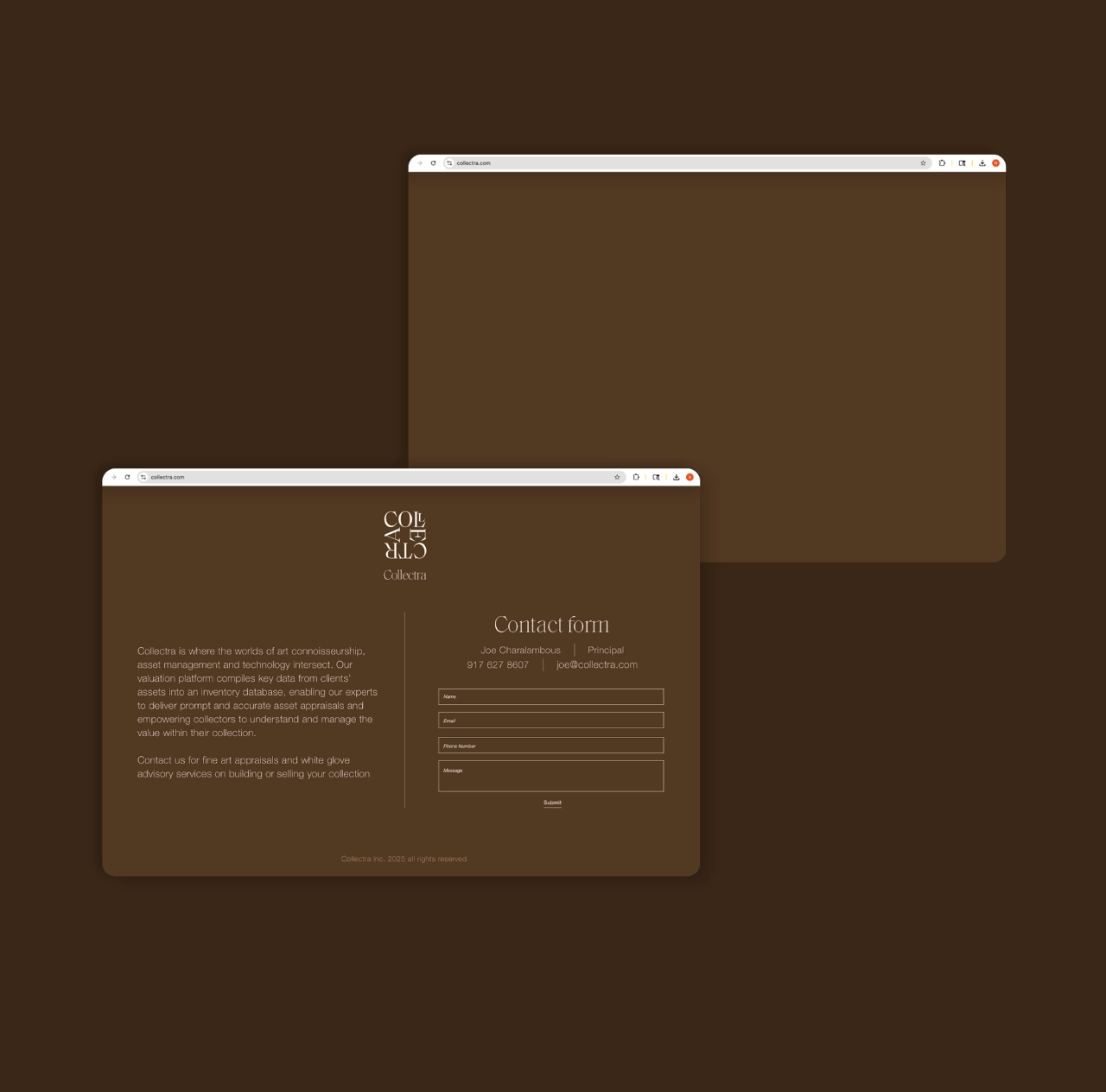 Collectra is a full-service partner for art collectors, offering discreet brokerage, thoughtful advisory, and smart technology—underpinned by deep market insight and years of experience. The brand is rooted in luxury and shaped by a holistic understanding of what collectors truly value: legacy, taste, and trust.